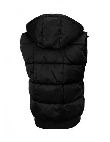 - regularny fason do bioder- efektowne zgrzewane pikowanie na całej powierzchni- wykonany z wysokiej jakości grubszej tkaniny poliestrowej- całość kamizelki jest ocieplana z gładką poliestrową podszewką w kolorze czarnym- ocieplany pikowany kaptur- wysoka stójka chroniąca przed zimnem- dwie boczne kieszenie zapinane na zamki- praktyczna kieszeń wewnątrz...