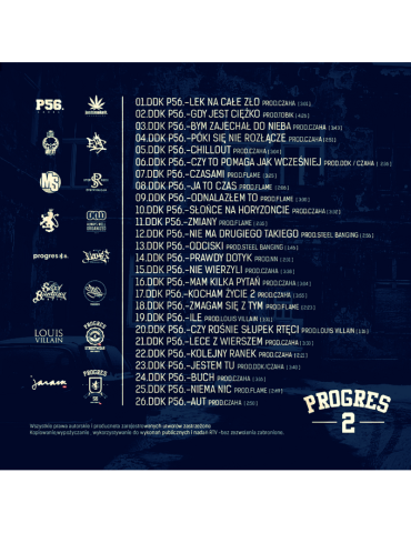 Witamy wszystkich zajawkowiczów dobrego ulicznego brzmienia, a zarazem pozytywnych myśli poprawiających szarą codzienną rzeczywistość w świecie DDK P56.Mamy dla was tym razem solo 10, które dudek konsekwentnie zatytułował "Progres 2". Jest to kontynuacja albumu solo 9 pt. "Progres 56", którego premiera odbyła się pod koniec 2016 rokuNajnowszy materiał...